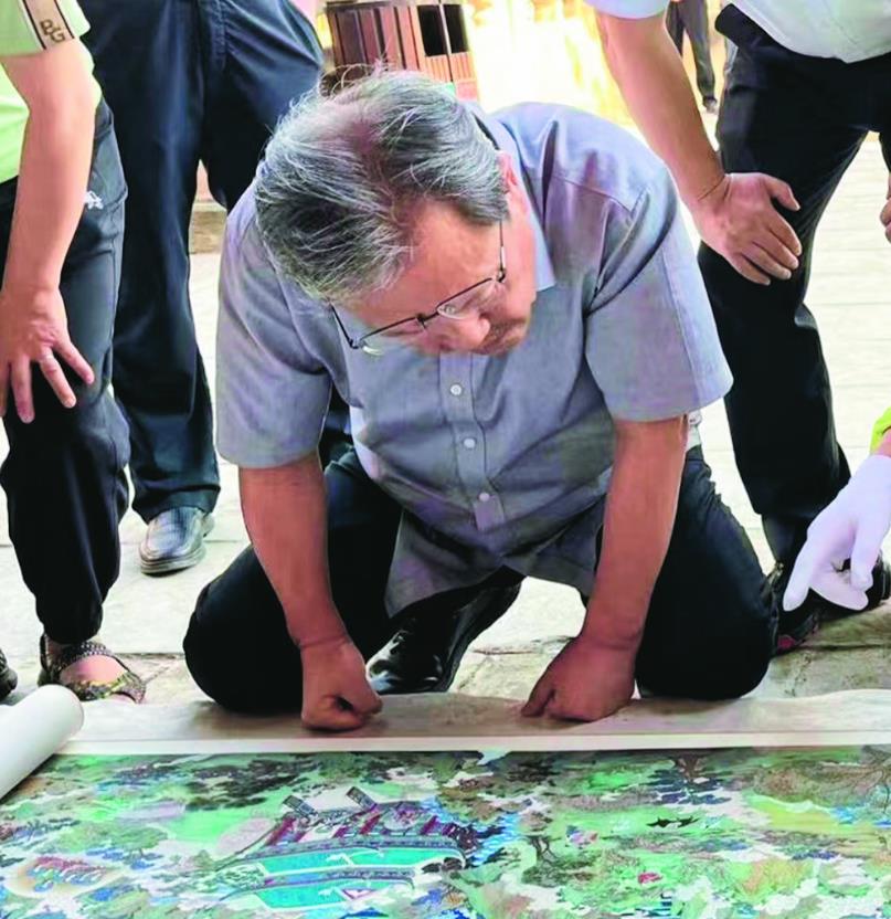 他暗自喟嘆,瞿曇寺能保存下來,真是萬幸,但由于歲月侵蝕,墻面上灰泥和草泥剝離,部分畫面起鼓、剝落受損,回廊壁畫的色澤在風沙打磨下變得單薄脆弱,更何況氣候變化、地震山洪等意想不到的災難,很有可能讓瞿曇寺壁畫面臨消失的那一天。而且瞿曇寺壁畫手稿并未傳世,600多年來不見一個副本。劉觖在國外生活多年,在世界各大博物館中,看到過帶墻皮被挖走的中國古代壁畫,憤懣之情難以言說。經(jīng)過一段時間的沉淀、思考,在查閱資料、學習考證后,他作出了一個連他自己都吃驚的決定:臨摹、復制、補繪瞿曇寺回廊得以幸存的400多平方米的壁畫,以畢生所學再現(xiàn)明代宣德年間回廊壁畫的高光時刻,為中華民族留下這一珍貴的文化遺跡。