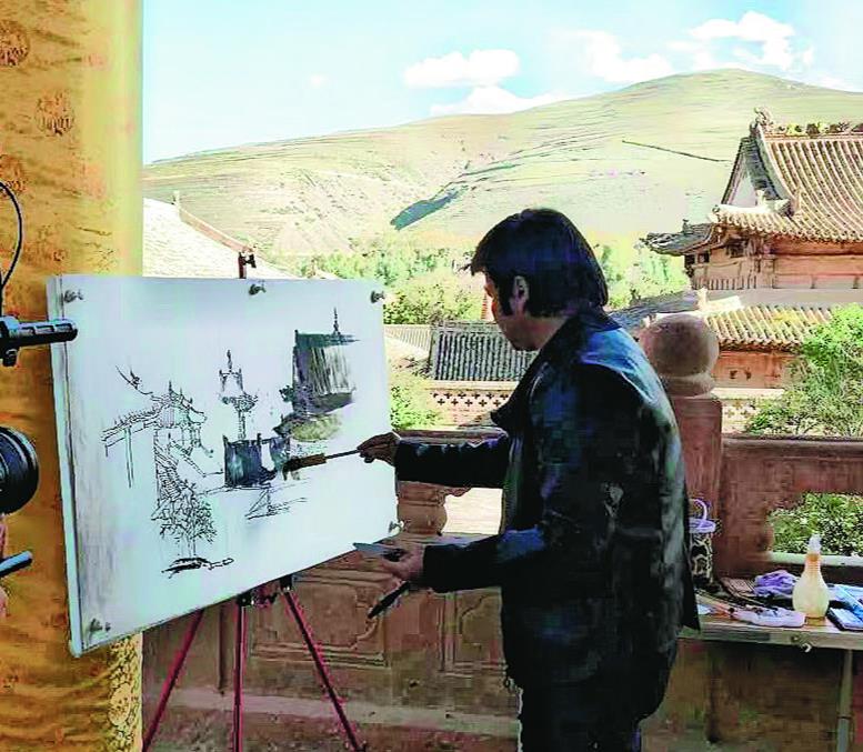 2014年,人到中年的劉觖回到心心念念的祖國,在國家畫院盧禹舜工作室研究高原山水畫。兩年后,他回家鄉(xiāng)青海采風,海東地區(qū)的卓倉藏族朋友邀請他“去瞿曇寺看看”。不想,這一看,他就再也“走不動了”。