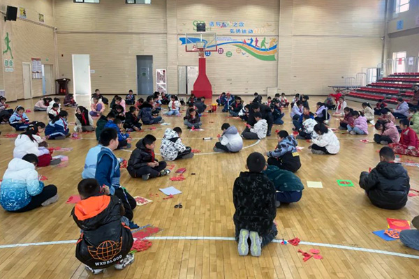 當日,城東區屬學校共同開展剪紙迎新春活動。在學校老師的細心指導下,折紙、繪圖、下剪、鏤刻、裝裱……有的在教室里一邊觀看視頻,一邊裁剪;有的人坐在風雨操場,聽老師指導完成送給特殊人群的新春禮物;有的在校園禮堂,共同體驗剪紙文化的智慧。孩子們在創作中放飛想象的翅膀,在裁剪中感受傳統工藝的魅力,樂此不疲地享受著剪紙的樂趣。
