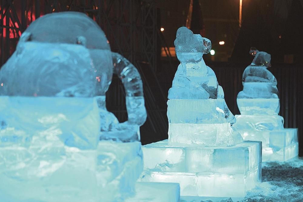 走進(jìn)位于城東區(qū)博文路46號(hào)的高原冰雪大世界,巧奪天工的冰雕作品讓人目不暇接。順著18根象征著希望的綠色之光迎賓柱就能看到一些熟悉的冰雕:以龍年春節(jié)為核心打造的十二生肖冰雕景觀;以春節(jié)年味為立意,制作的大型冰燈籠景觀;還有西寧特色主題大型地標(biāo)冰燈景觀——文峰塔、北辰門、鳳凰亭等;以青藏高原生態(tài)為立意制作的三江源紀(jì)念碑、雪豹、藏羚羊、野牦牛、兔猻等生態(tài)動(dòng)物冰雕。