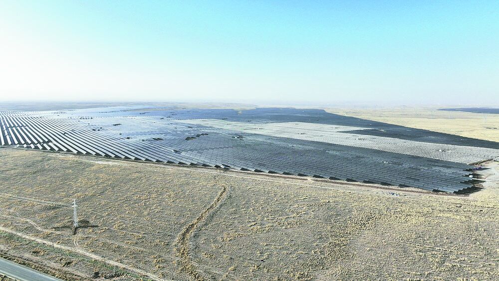 2023年12月15日,位于海南州興海縣河卡灘的國家第一批“沙戈荒”重點(diǎn)大型風(fēng)電光伏基地建設(shè)項目——大唐興海大基地50萬千瓦光伏項目成功投運(yùn)。極目遠(yuǎn)眺,“大唐藍(lán)海”涌入荒灘戈壁,一塊塊碩大的光伏板,閃爍著藍(lán)色的光芒,也折射出耀眼的“新”速度。