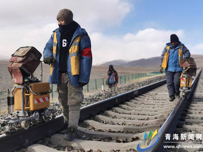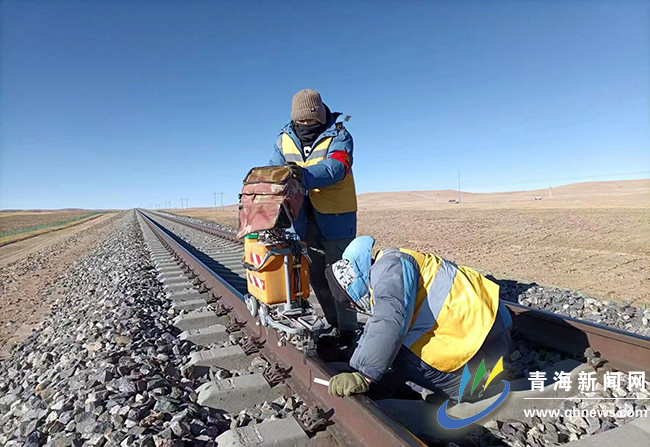 早上9時,隨著“天窗”命令的下達,格爾木工務段清水河探傷工區的探傷工頭戴厚棉帽、身著大棉衣、腳穿大頭鞋,開始對青藏鐵路五道梁至曲吾區間線路進行“體檢”。高原耀眼的陽光下,他們身上的黃馬甲顯得格外醒目。超聲波探傷儀在鋼軌上緩慢移動,發出的“嘀嘀”聲和探傷小錘敲擊鋼軌的清脆聲不時響起。劉軍就是從這些“音樂”中判斷鋼軌是否有傷損。