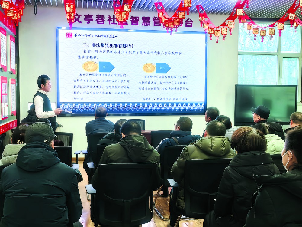 1月23日一早,西寧市城西區文匯路街道文亭巷社區綜合服務中心內熱鬧不已,社區居民齊坐一堂,認真聆聽銀行工作人員的專題反詐課。