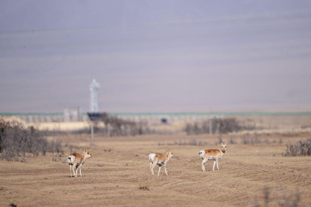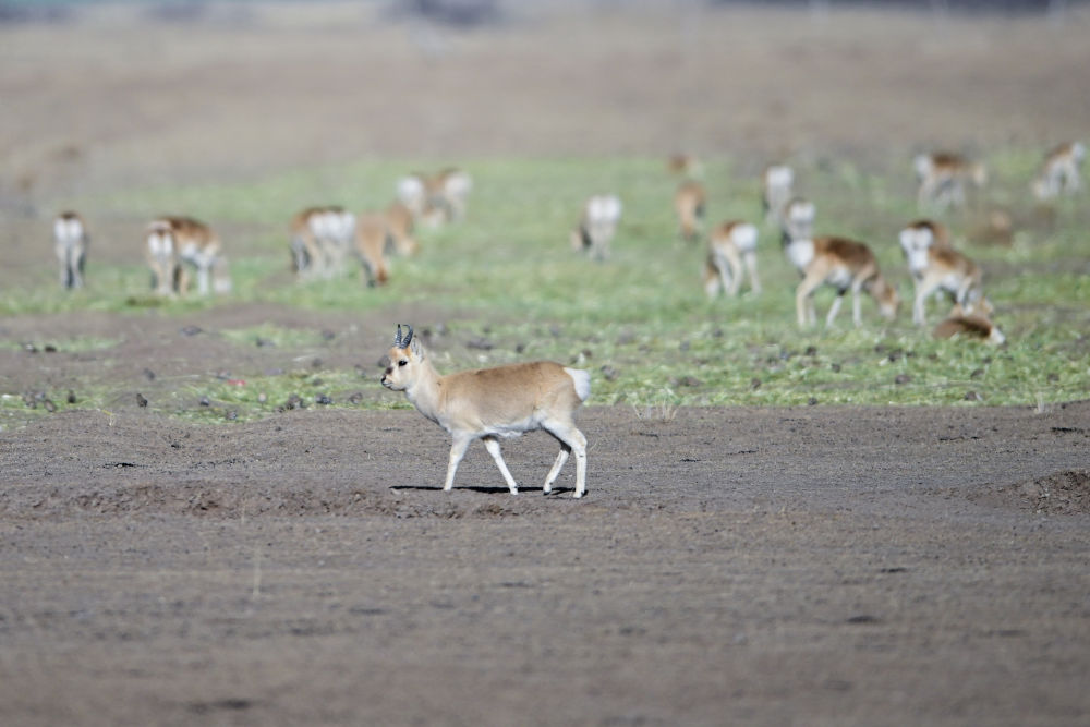 這是1月24日在青海省海北藏族自治州剛察縣哈爾蓋鎮(zhèn)境內(nèi)的草原上拍攝的普氏原羚。新華社記者 耿輝凰 攝