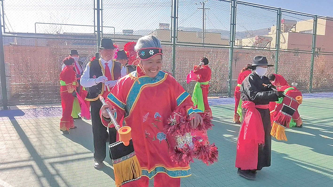 “咚咚鏘!咚咚鏘!咚咚鏘……”1月29日,湟中區土門關鄉土門關村傳來陣陣鑼鼓聲。循著聲音走進村文化廣場,載歌載舞的社火隊映入眼簾。舞獅、扭秧歌、劃旱船、威風鑼鼓、扇子舞等,廣場上,演員個個精神抖擻、神采飛揚,伴隨著鼓點跳著歡快的舞蹈。