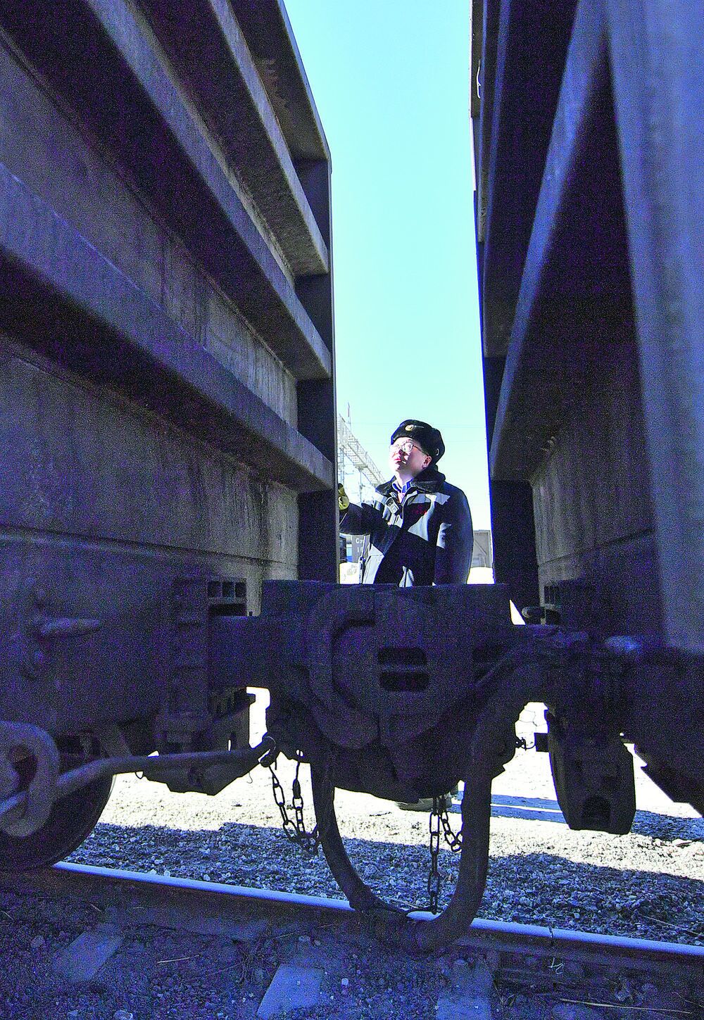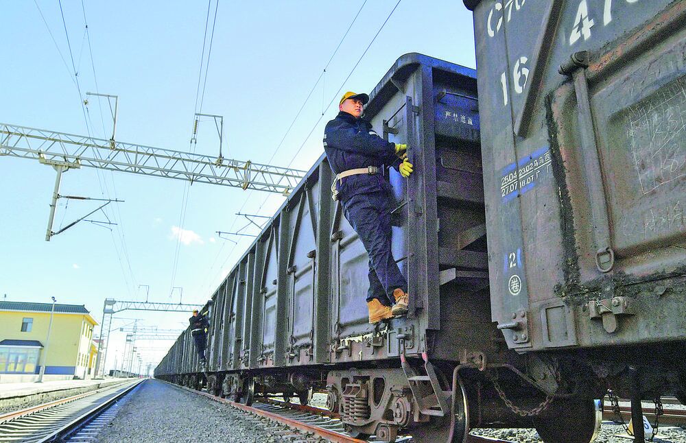 13時,剛值完夜班的貨運值班員王偉又來到貨運車站,逐個檢查貨運車廂的車體和集裝箱狀況,車號是否一致、集裝箱腳架是否對齊、倉門是否關閉……寒風中,他一次又一次穿行在列車和集裝箱之間,用汗水守護貨運安全。