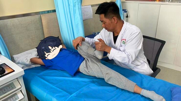 小軒軒(化名)正在接受康復推拿。(圖片由省殘聯康復部提供)