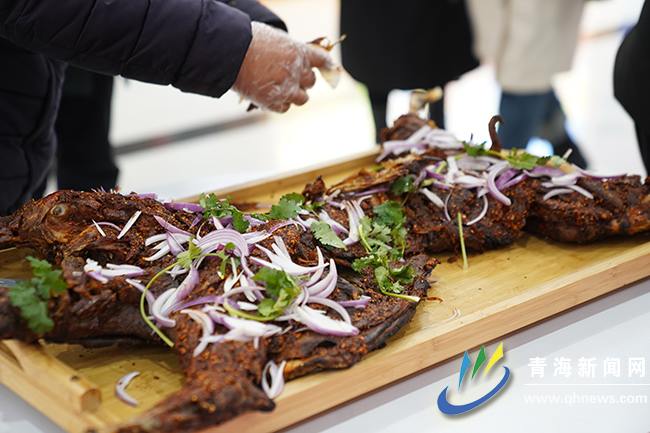 海南州特色農畜產品年貨節暨“光伏牧場”藏羊系列產品推介活動現場主要分為兩個區域。在產品區,富有海南州特色的優質農畜產品紛紛亮相;在品鑒區,主辦方擺起了一個個精致的小火鍋和烤全羊供賓客品嘗,鮮香肥美、不膻不膩的羊肉讓賓客流連忘返。