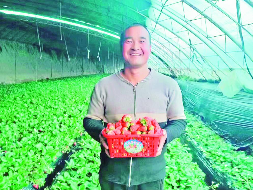 近日,記者來到合爾營村的文文草莓園,掀開大棚棉門簾,一股果香撲鼻而來。經過悉心照料,草莓長勢喜人,熟透的果子紅潤而充滿光澤。