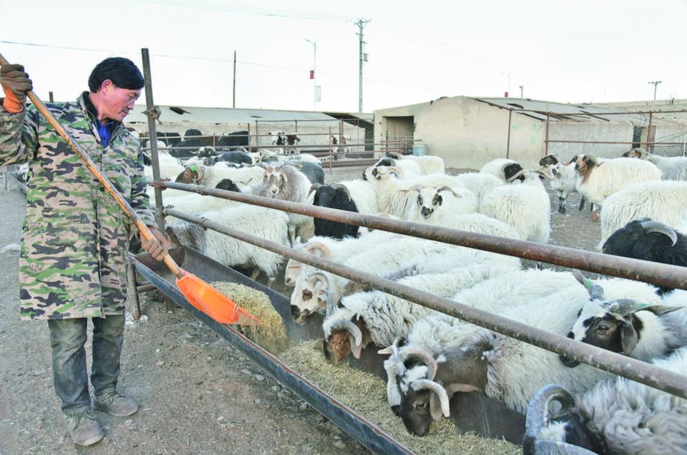 “天氣比較冷,飼料喂好了,營養(yǎng)跟上了,牛羊才能保膘。”從前院的牛圈到后院的羊圈,蔡相山和馬相梅相互配合完成了投料,合作社里的牛羊在他們的照顧下膘肥體壯。