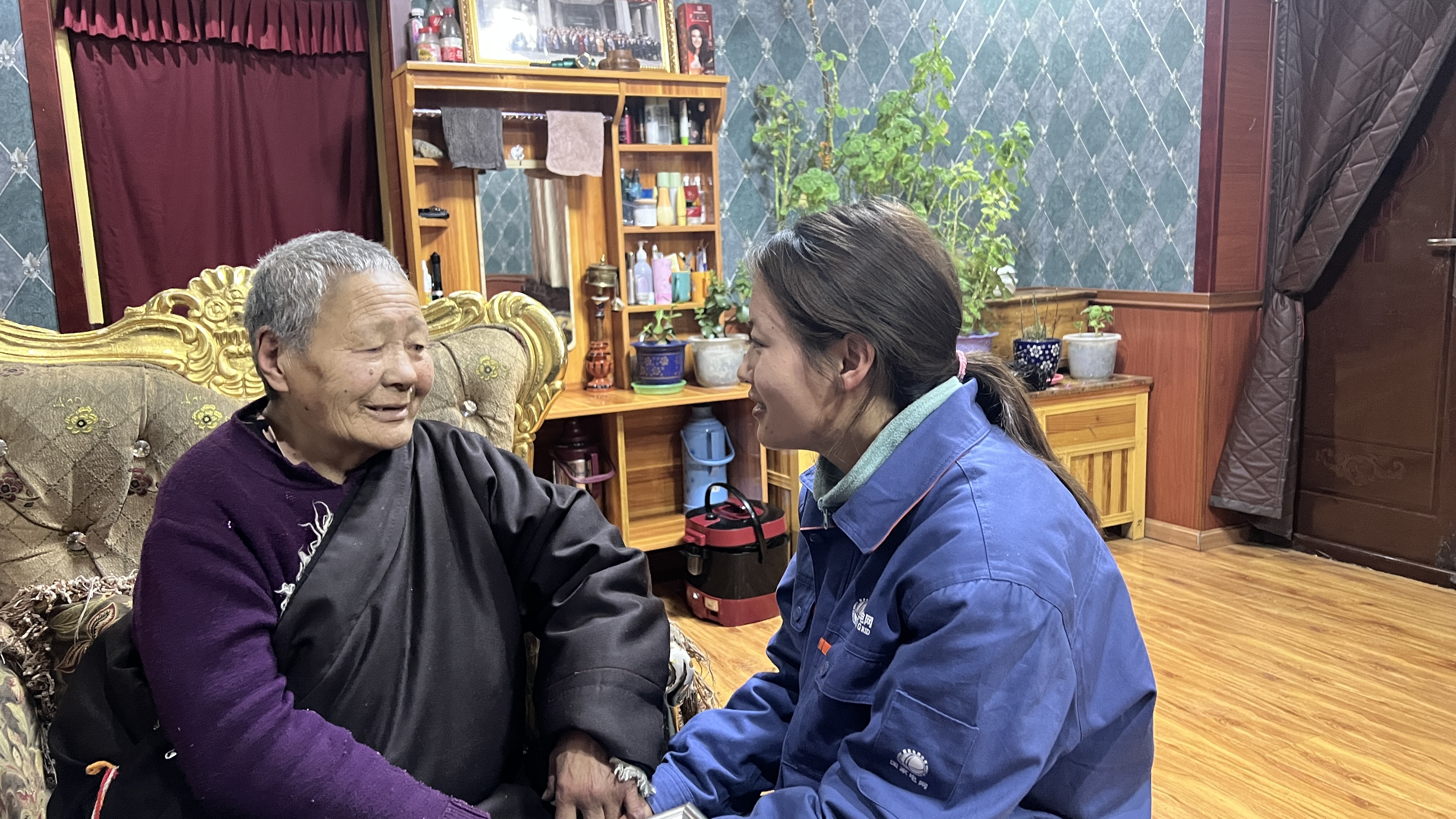 今年78歲的措尕是一名獨居老人,腿腳不太方便,子女也不在身邊。藏歷新年就快到了,2月1日扎西拉毛特意來到老人家中,幫忙檢查家中電器設備,義務更換開關插座和室內外老化線路。