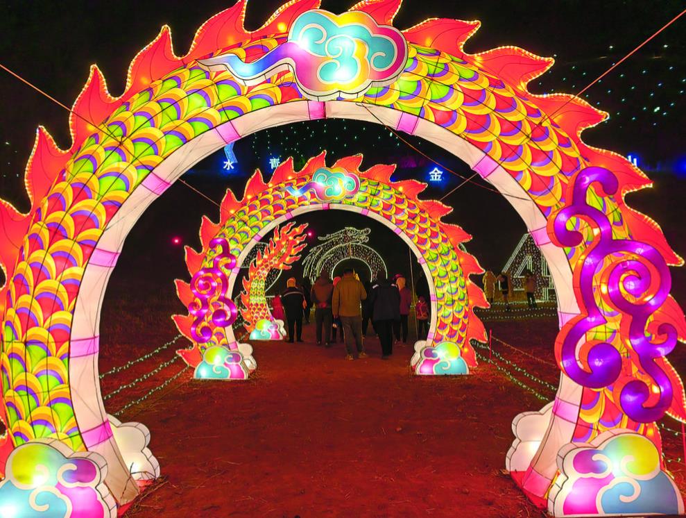 從臘月初八以來,油嘴灣生態文化旅游景區以花燈展、美食、光影秀、煙花秀、篝火晚會、民俗為內容,開展以“回老家過年”為主題的大型燈展活動,各種造型獨特、寓意吉祥的花燈讓人目不暇接,每走一步都能發現新的驚喜,懸掛的小彩燈、“春”字造型燈、龍形燈廊、繁星點點的落地花燈,時光隧道、月亮、星河等造型各異的彩燈錯落在景區各處,美輪美奐的彩燈藝術帶來獨特的視覺盛宴,游客邊走邊拍,流連忘返。