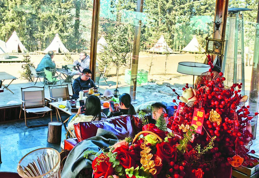 西寧市大通回族土族自治縣流浪荒野營地氛圍感滿滿,雪地露營、 圍爐而坐成為年輕人消費新風潮。魏雅琪 攝