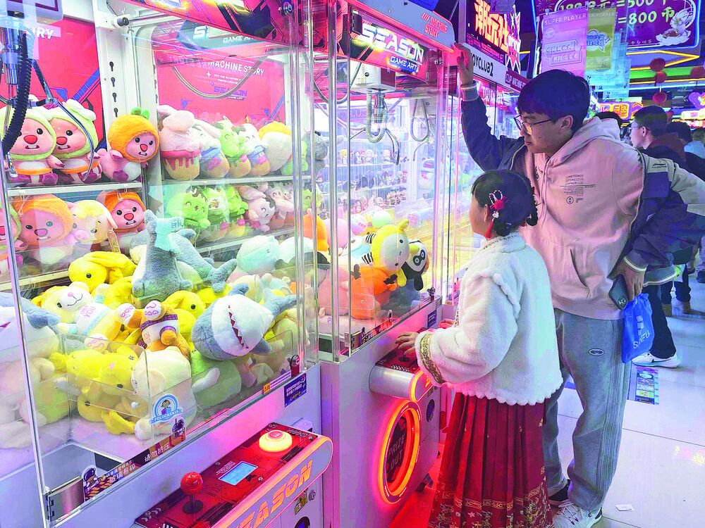 正午時分,景區各種娛樂項目的攤位前人山人海,蹦高的、套圈的、蕩秋千的……孩子在父母的陪伴下盡情享受著過節的喜悅。