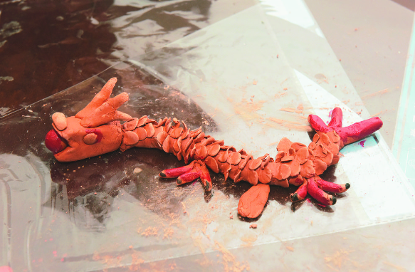 人群中,74歲白發蒼蒼的李先生十分引人注目,他是和女兒陪著六歲半的外孫女湛湛來參加活動的。湛湛看到出土的漢代陶井文物后,十分喜歡,自己也動手制作了一個陶井。而她的媽媽李女士則制作了一條陶龍。