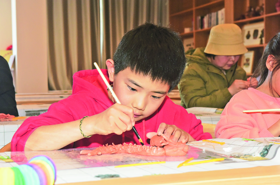上初中一年級的趙子曄是和媽媽一起來的,她在家里養了只小狗,這回做得就是一只陶狗。“沒想到彩陶看著簡單,做起來卻不容易。古人在當時落后的條件下還能制作出那么精美的彩陶,我對他們的智慧十分欽佩。”