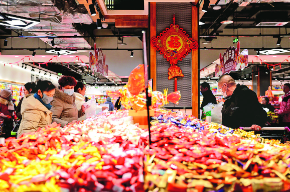 春節期間,記者走進一家親生鮮超市,紅燈籠、中國結、對聯等飾品將超市裝扮得紅火一片,濃濃年味撲面而來,在各個銷售區,各類商品琳瑯滿目。為了滿足市民的購買需求,保證平價供應品種的品質,各大商超、農貿市場做足準備,全力保障售價平穩,質量不降,確保讓群眾的“購物車”推得穩。
