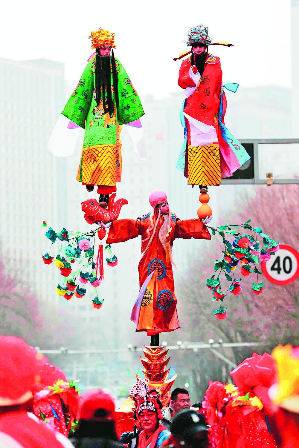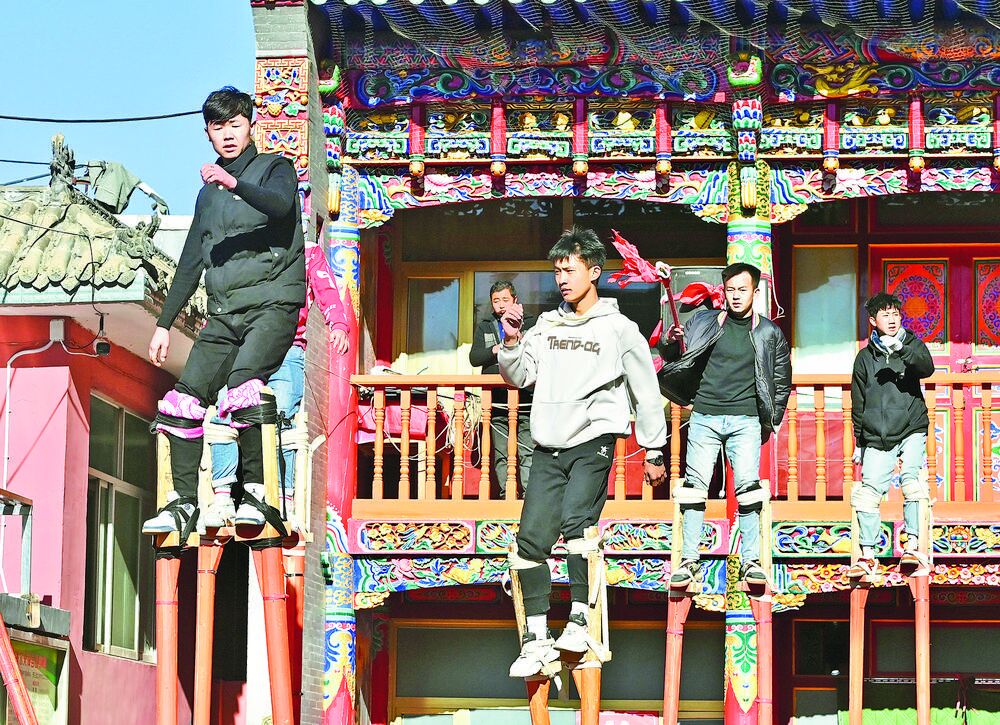 高臺社火,“三星”迎春。