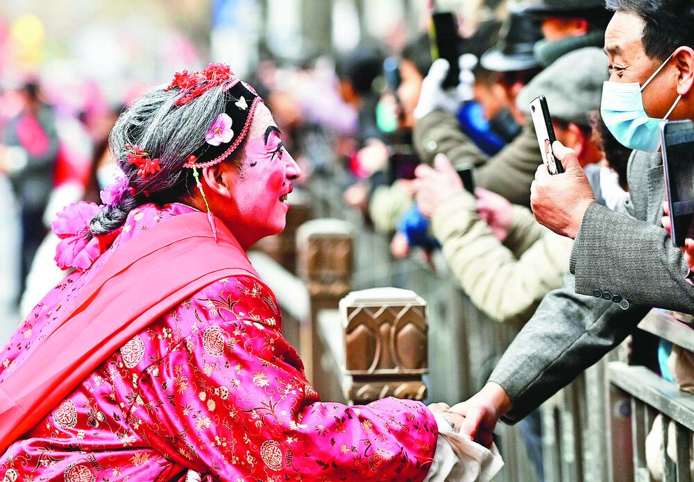 “胖婆”送福,互動十足。