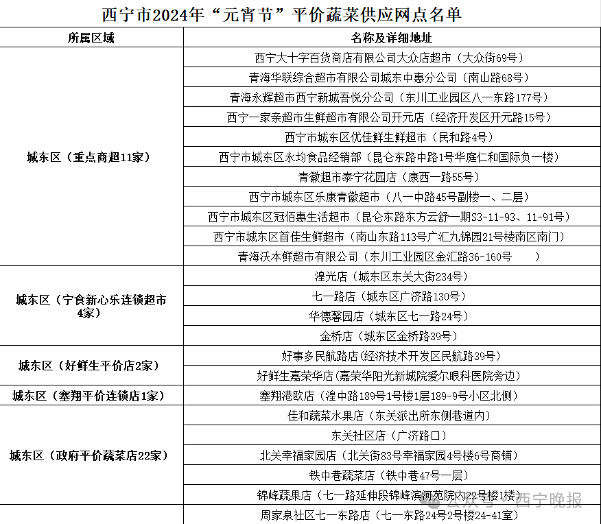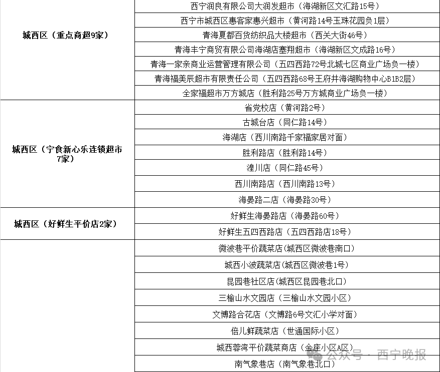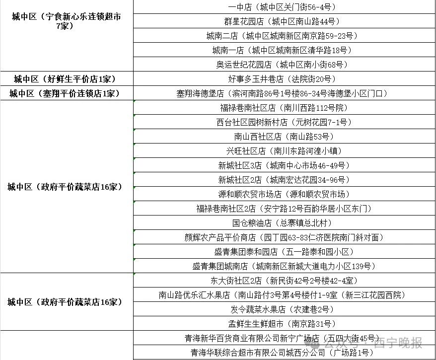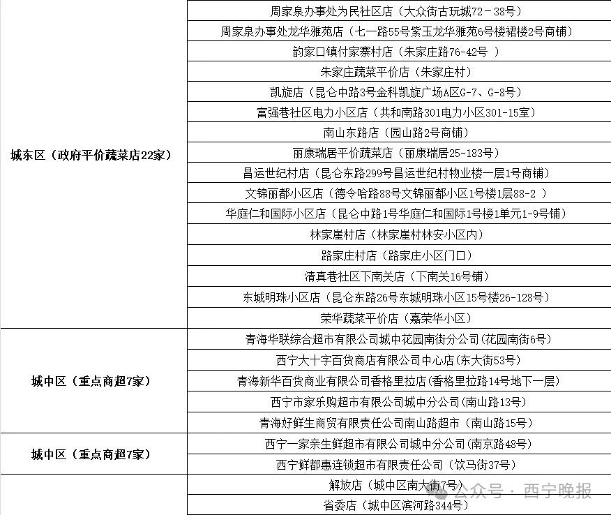 平價供應網點分別在城東區、城西區、城中區、城北區四區,共設置平價蔬菜供應網點139家(其中政府平價蔬菜店66家、重點商超37家、連鎖便利店36家),雞蛋平價供應網點45家。