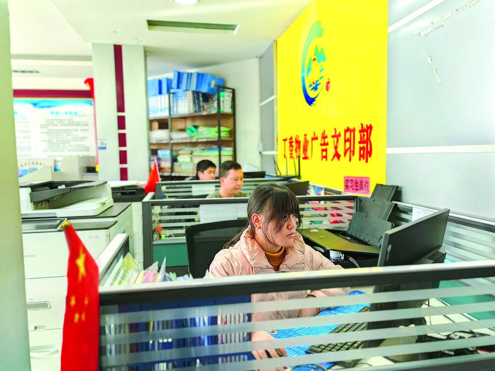 一直四處打工、尋找發展機會的巴燕鎮西下村村民陳生忠,如今是文印部的業務經理,每月5000元工資,文印部離家很近,能照顧經常生病的母親和兩個孩子。對于這份工作,他非常滿意:“終于不用四處漂泊了,我會把現在的工作當作終身事業來做。”