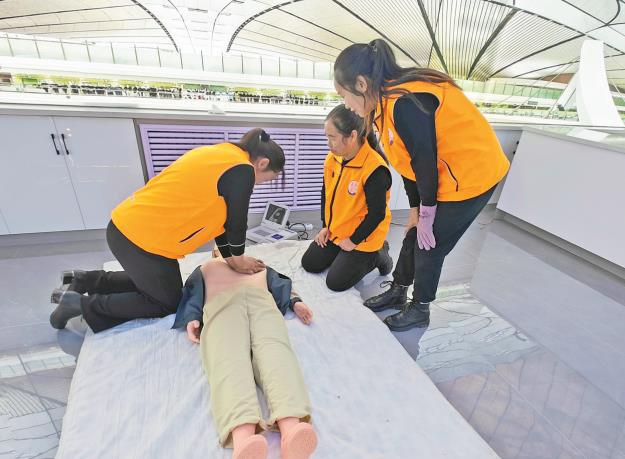 在母嬰護理區,38歲的許娜文聚精會神聽著每一步介紹,認真做每一個動作,還時不時拿出手機記錄下關鍵的步驟。