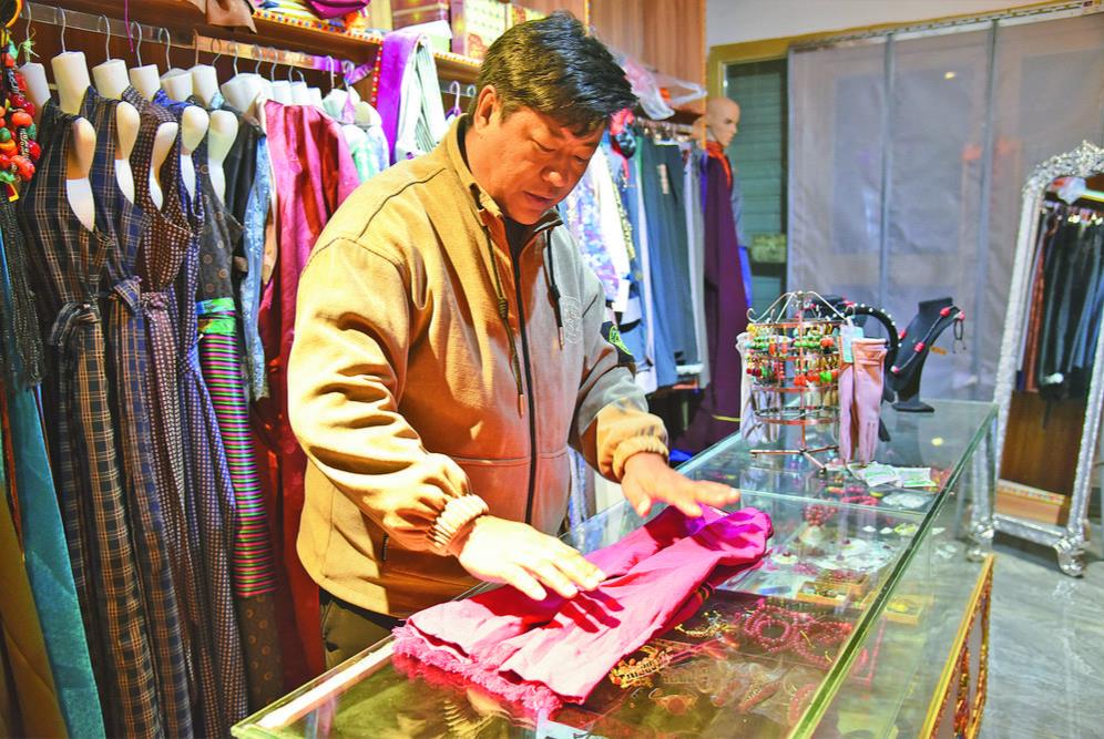 “這邊是休閑飲茶區(qū),這邊是民族服裝和飾品區(qū),我們準(zhǔn)備了5間不同類型的客房,能夠滿足客人的不同需求。”鬧布桑周熱情地帶著記者參觀房間,從精心布置的大廳到雅致溫馨的客房,可以看出他花了不少心思。