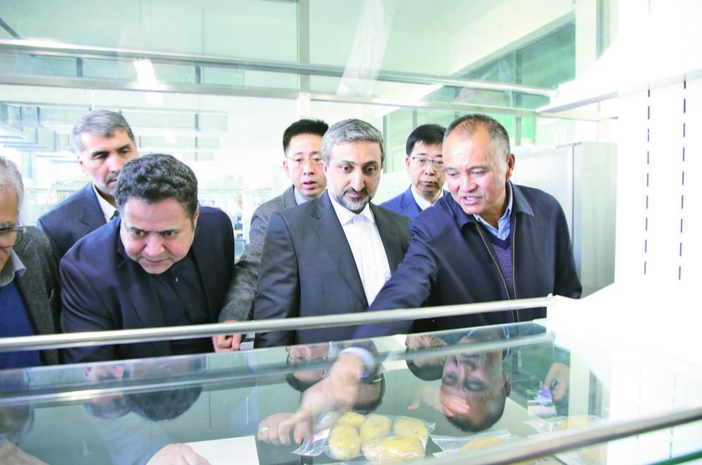 王艦為伊朗阿爾達比勒省外賓介紹我省馬鈴薯薯種。省農林科學院供圖