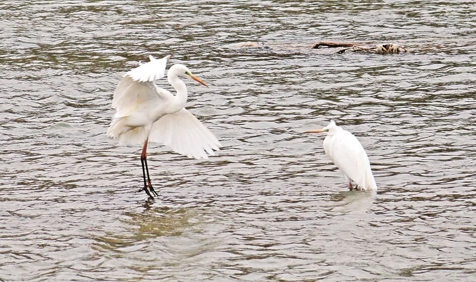 “那是大白鷺。”順著管護人員指的方向望去,體型較大的9只大白鷺站在河道里紋絲不動,即便大風把一根根羽毛吹得凌亂,它像是風中仙子一樣,依然在河道里筆直地站立著。