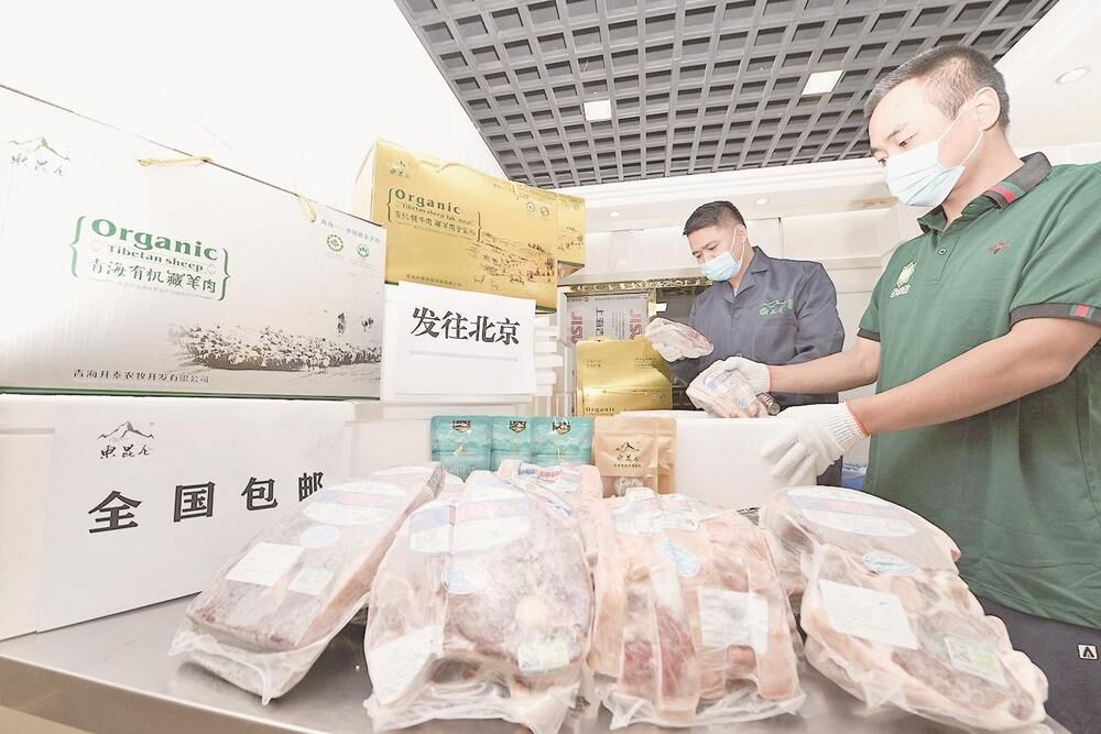 青海海沃商貿有限公司是一家推介經營大通牦牛肉、藏羊、馬鈴薯、青稞、菜籽油等本地特色農畜產品的企業。每日上午,一輛輛滿載著青海特色農產品的冷鏈車從大通回族土族自治縣青海海沃商貿有限公司駛出,一路開往江蘇、廣州、北京、重慶等地,一些銷售緊俏的農副產品會通過空運及時運往目的地。