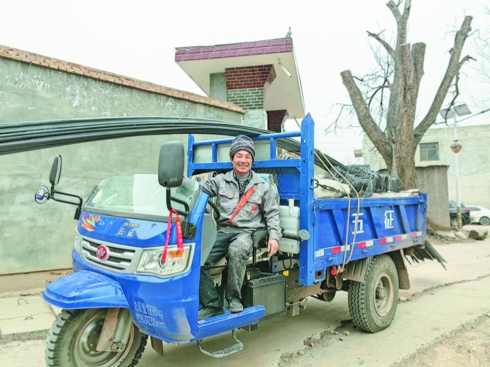 村民鮑春西家的房子被鑒定為C級(jí),最近他要趕在務(wù)工前把房子基礎(chǔ)搭建好,看見他時(shí)他剛好載著一車鋼筋水泥等材料回家。