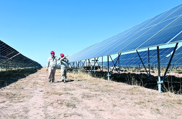 運維員在光伏項目現場進行定期巡檢工作。 本報記者 陸廣濤 攝