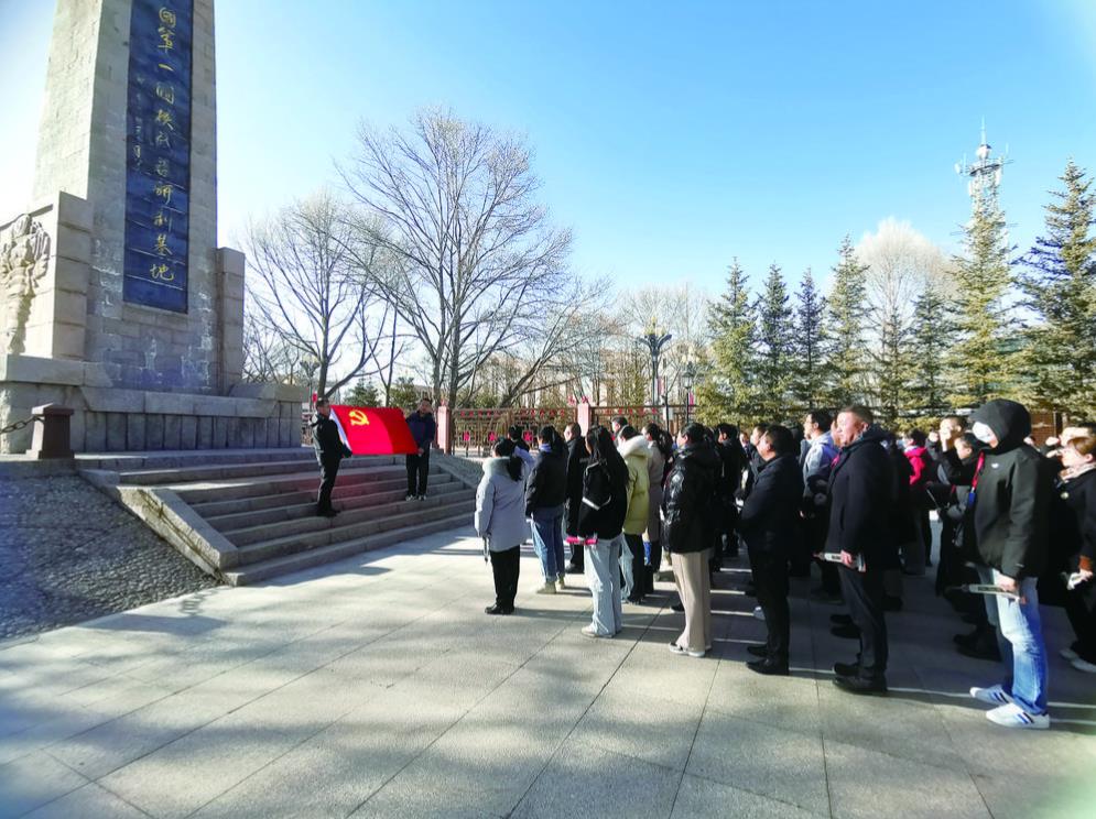 中國第一個核武器研制基地紀念碑前,學員們矚目肅立。這座矗立在青藏高原小鎮的紀念碑所昭示的歷史、承載的精神,已經成為了我們現代精神文化的豐碑。