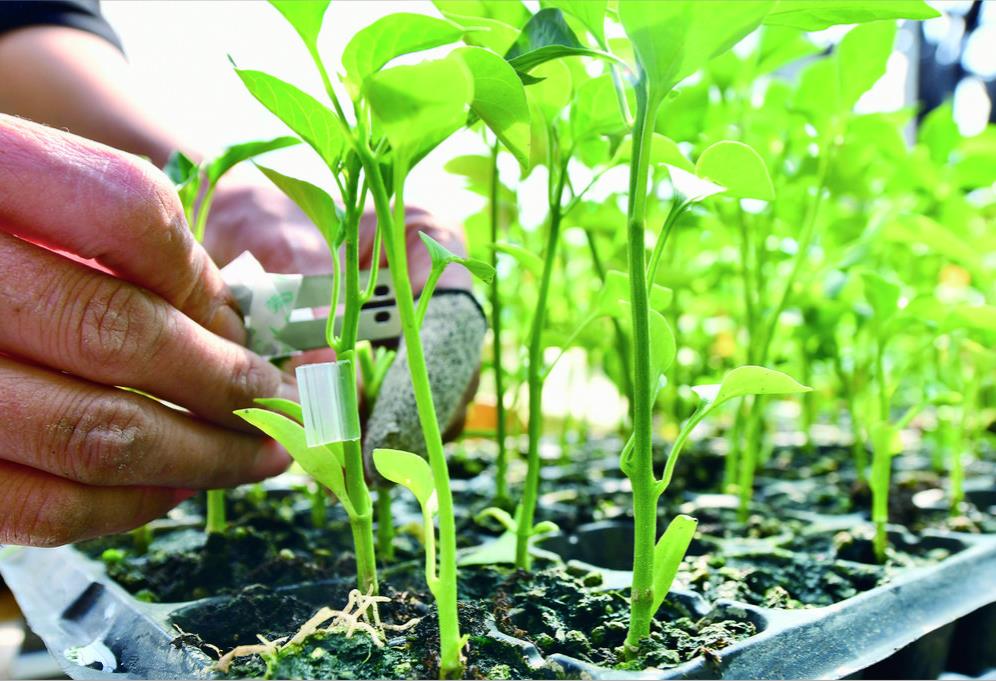 4月11日,記者來到海東市樂都區洪水鎮姜灣村高原綠色蔬菜育苗基地,溫棚內一排排青澀嬌嫩的幼苗在種植戶的悉心照料下茁壯成長,技術員拿起遙控器輕輕一點,自動噴灌機在育苗床上方緩緩移動,澆灌幼苗,智能化的管理,讓蔬菜大棚盡顯“科技范”。