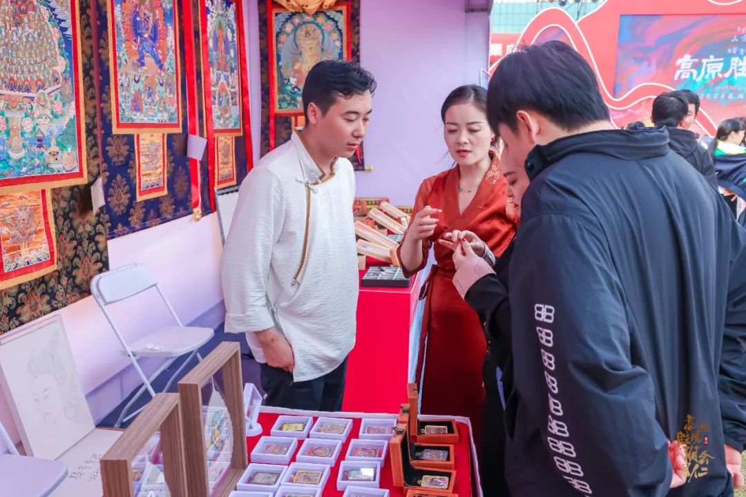 同時,活動現場搭建56個產品展臺,集中展示同仁黃果飲品、中藏藥材、沙棘果汁、黑青稞、特色肉制品、唐卡繪畫、非遺手工藝品等具有同仁特色的名優(yōu)產品30余類8000余件產品,累計線上銷售835萬元,線下銷售1100萬元,為廣大長沙市民和游客帶來了一場充滿民族色彩和熱貢文化的體驗之旅。此外,推介會采取限時體驗、產品饋贈、展示展銷等多種方式,以沉浸式、場景化、娛樂化為特征,融合同仁特色民族元素,打造互動“打卡”體驗區(qū),50余家市級文旅產品和特色農產品企業(yè)及4家州級企業(yè)累計參加展銷,高原有機牛奶、酸奶、雞蛋等特色小吃集結現場,吸引眾多游客參與,活動期間游客流量累計達10萬人次。