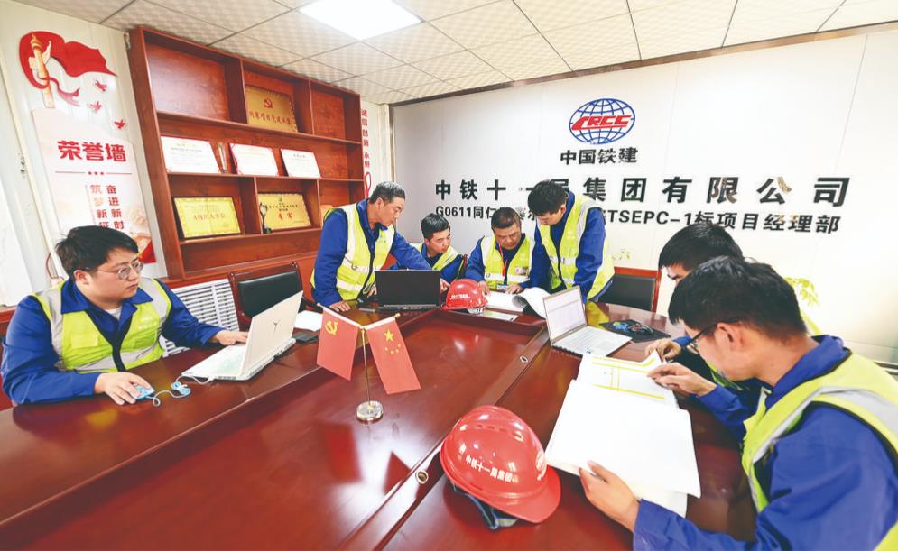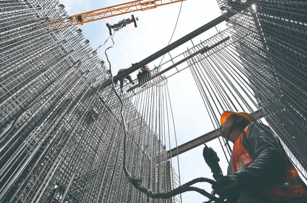 乘坐電梯到達(dá)高橋墩停梯層,再順安全梯來(lái)到頂端的施工層,眼前的場(chǎng)景非常壯觀:支架搭設(shè)、模板拼裝、鋼筋綁扎、模板加固、混凝土澆筑……每一道工序都是那么的科學(xué)嚴(yán)謹(jǐn)、流暢有序。建設(shè)者頭戴安全帽、身系安全帶,在鋼筋水泥間緊張有序地忙碌著,熟練作業(yè)的身影仿佛一個(gè)個(gè)跳動(dòng)的音符,奏響了高空中令人震撼的鋼鐵交響曲。為著力打造平安百年品質(zhì)工程,他們默默貢獻(xiàn)著自己的智慧和力量。