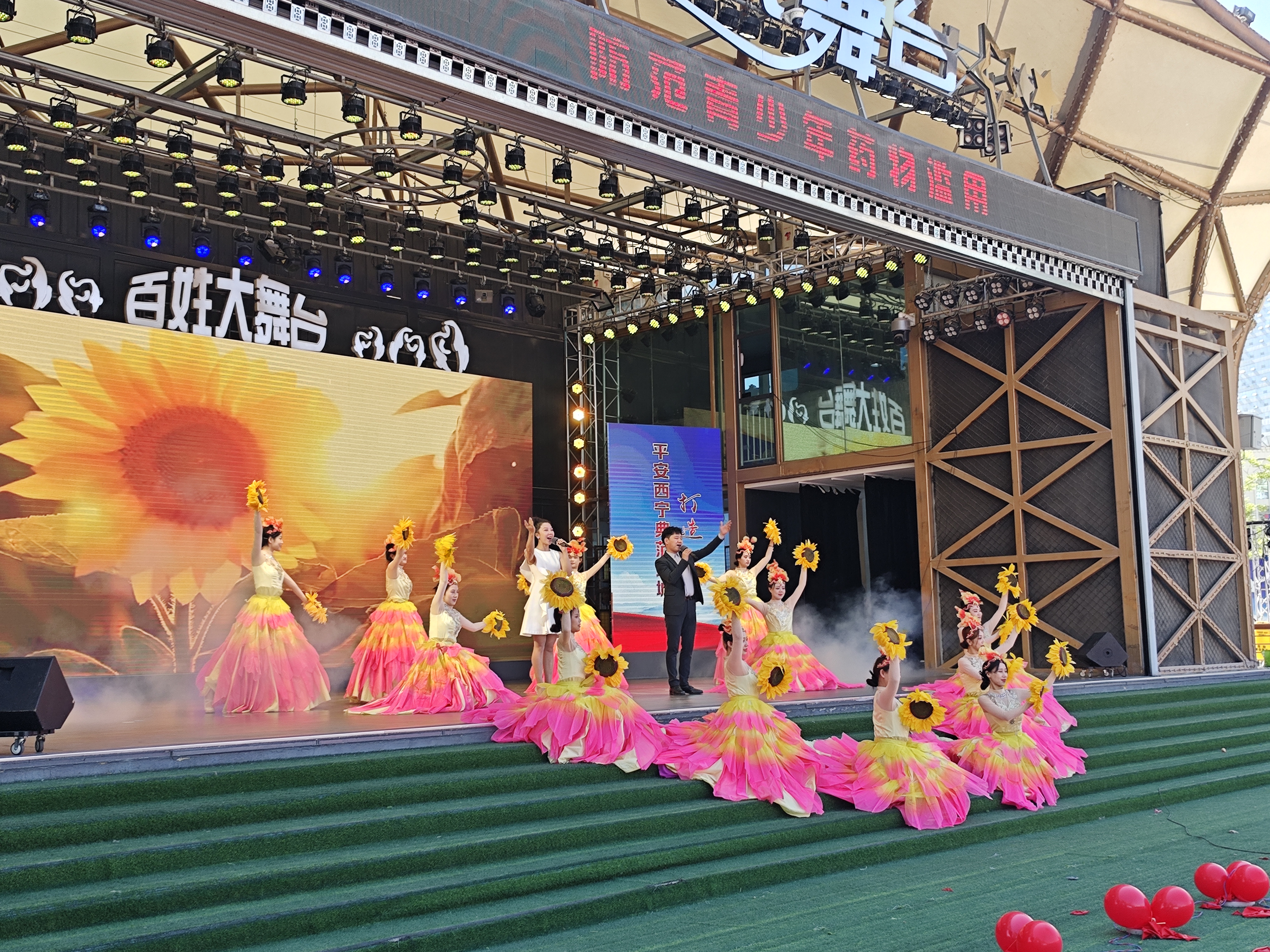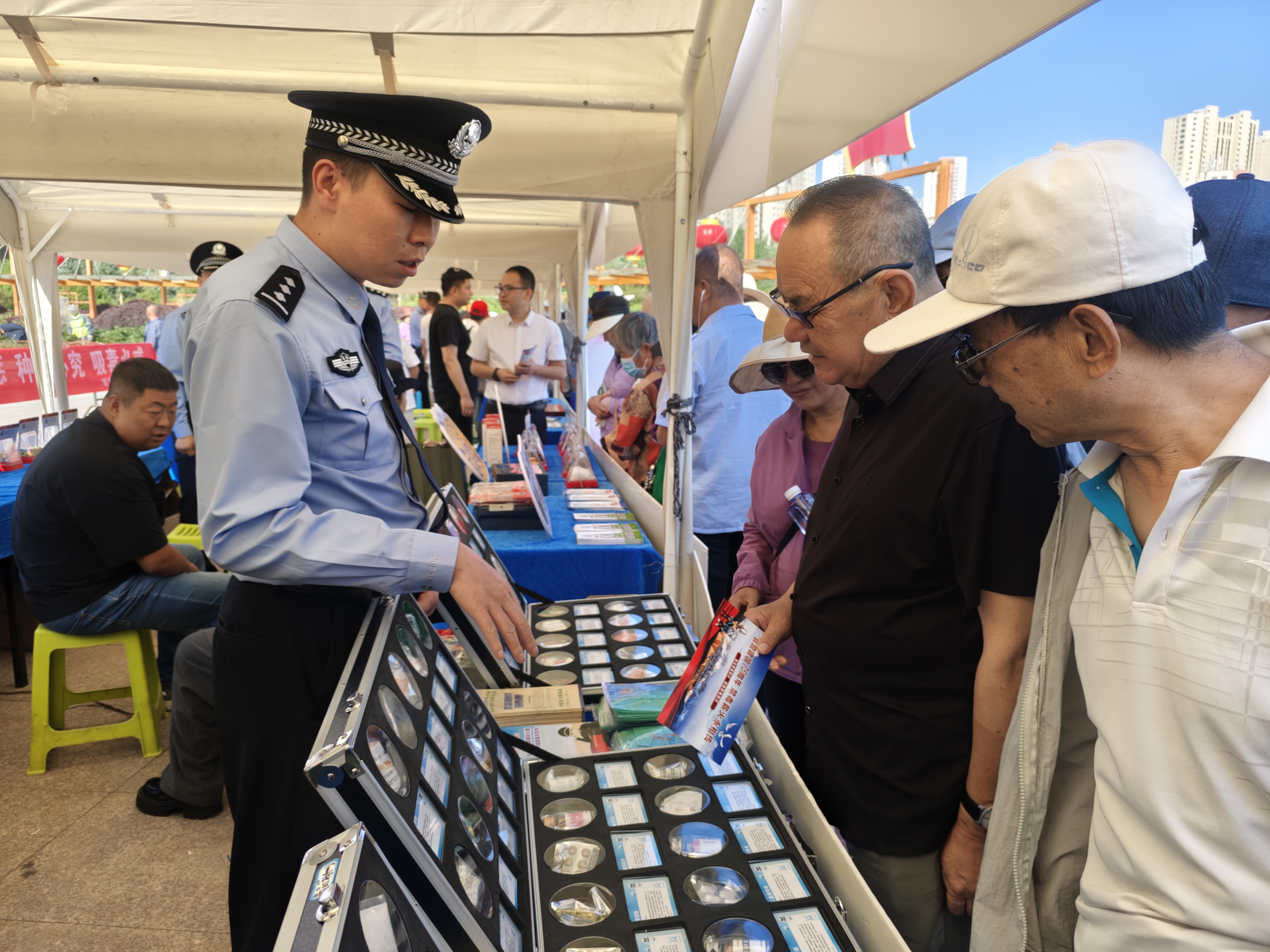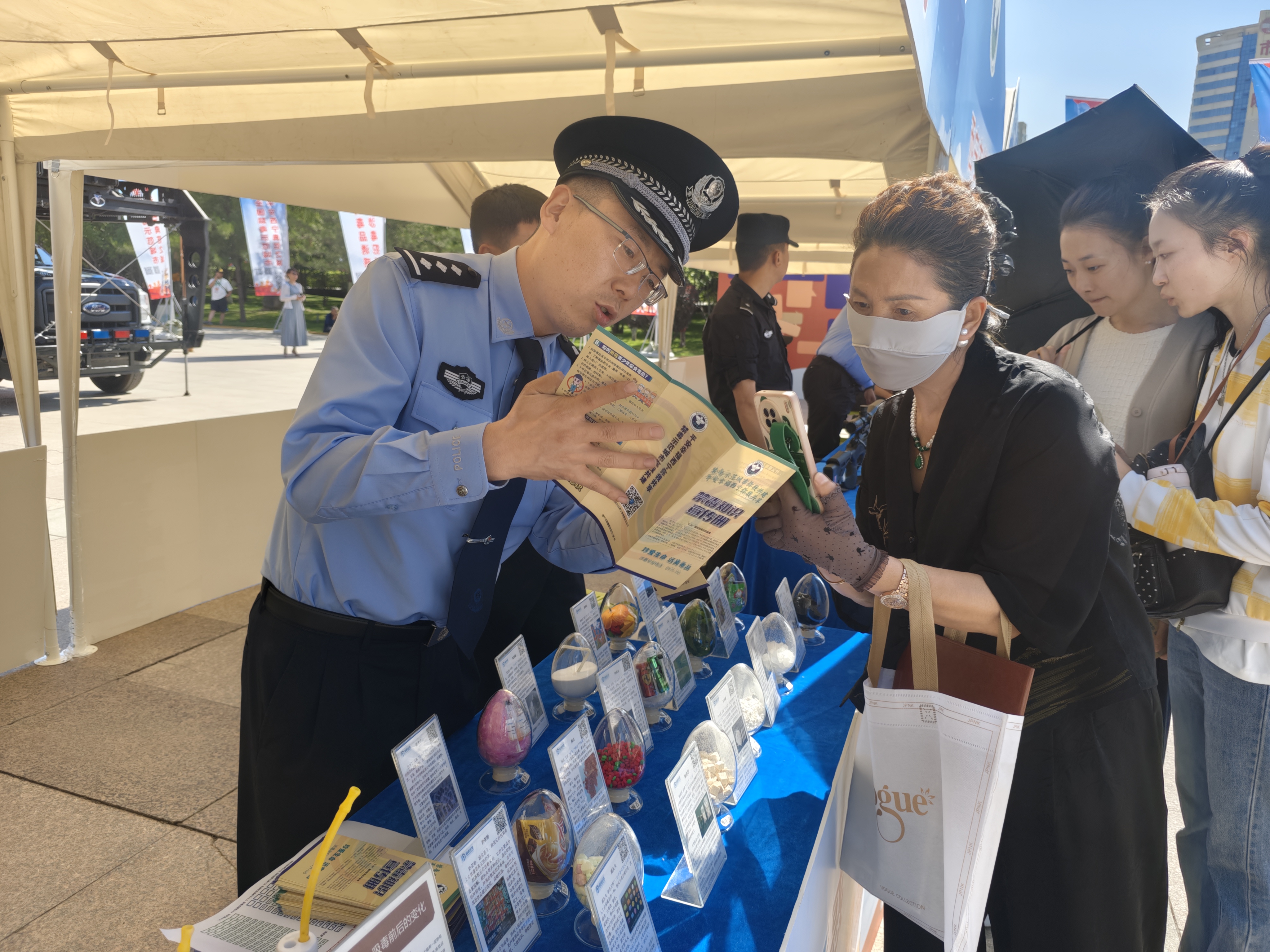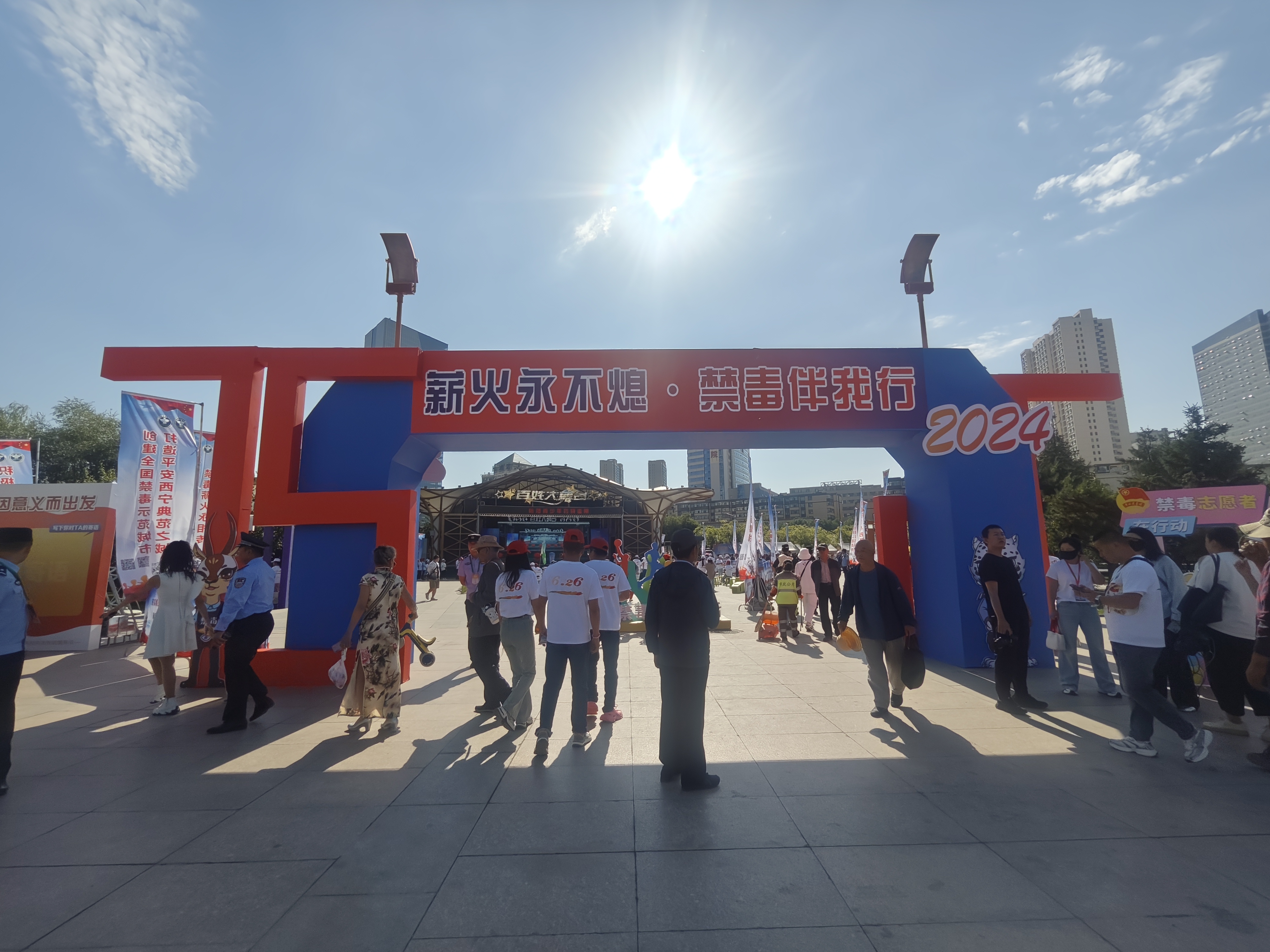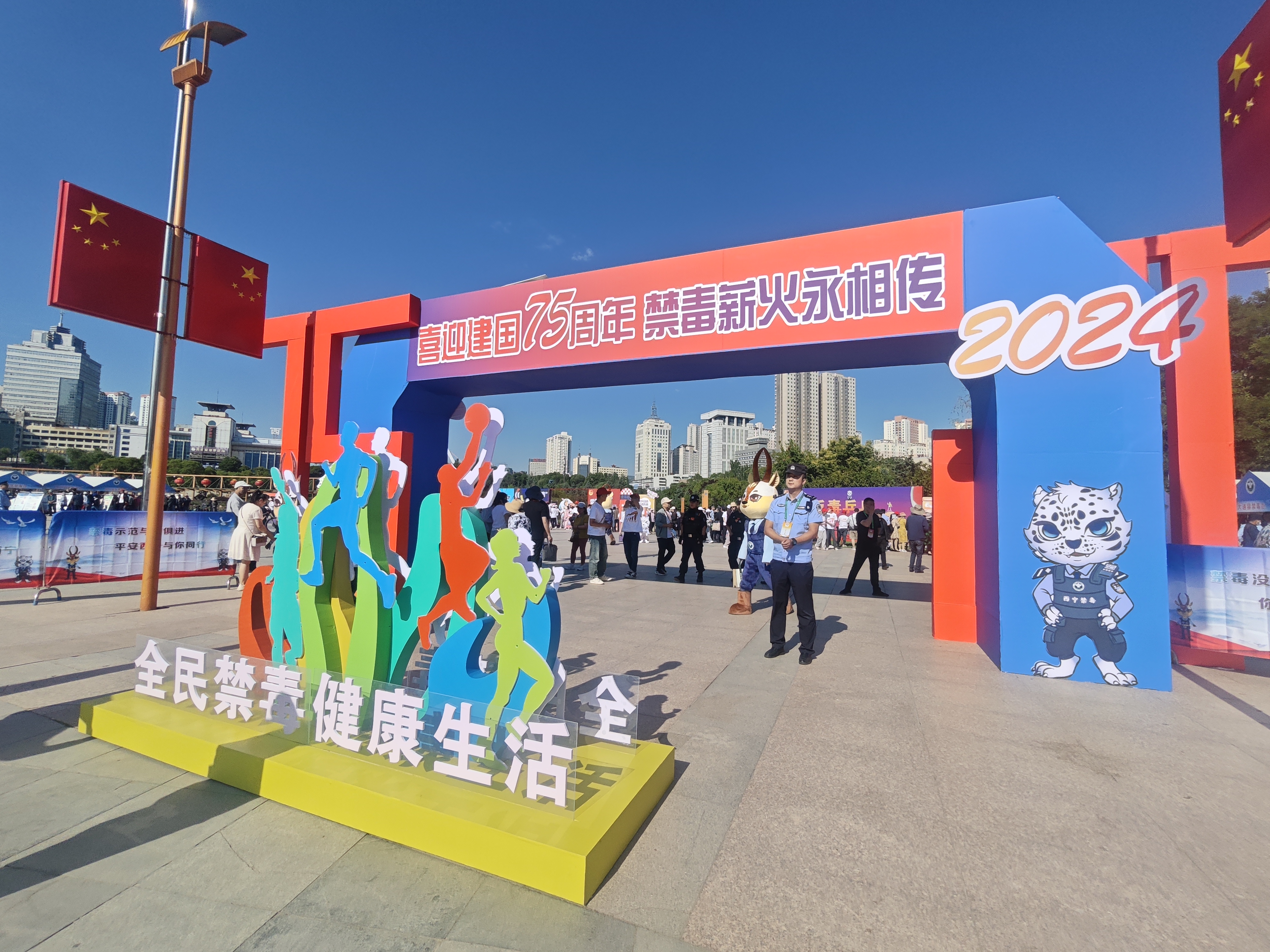 現場活動啟動前設有“彩虹跑”環節,寓意著禁毒工作的薪火相傳。禁毒知識有獎互動活動分為游戲區、互動區和文創展示區,游戲區,設同心戰“毒”、雷霆掃“毒”、慧眼識“毒”、智慧辨“毒”、巔峰決“毒”、全民禁“毒”、乒乓反“毒”等游戲,群眾在游戲中學習禁毒知識;互動區,青海省禁毒動漫形象大使“羚羚”、西寧市禁毒動漫形象大使“豹豹”人偶、緝毒警犬與現場觀眾親切互動,同時展示最新公安武器裝備,彰顯公安緝毒民警的決心力量;文創展示區,融入禁毒元素的鑰匙扣、玩偶、手伴等供群眾觀賞。整個禁毒知識有獎互動活動群眾參與熱情高漲,現場氛圍活躍、熱鬧非凡。禁毒主題文藝演出節目精彩、好戲連臺,為大家呈現了一場禁毒宣傳視聽盛宴。