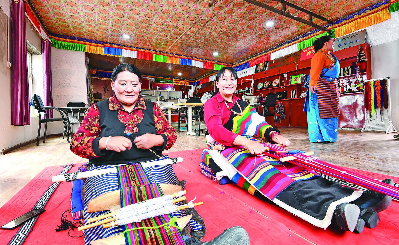 村民在合作社編制藏式傳統飾品。通訊員 馮春梓 供圖