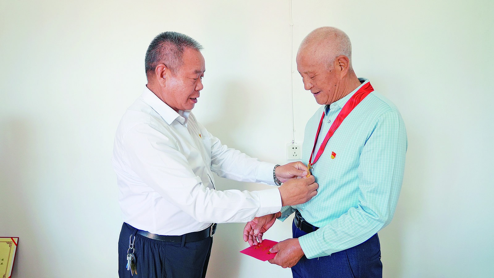 為老黨員佩戴“光榮在黨50年”紀念章 海北州委組織部供圖