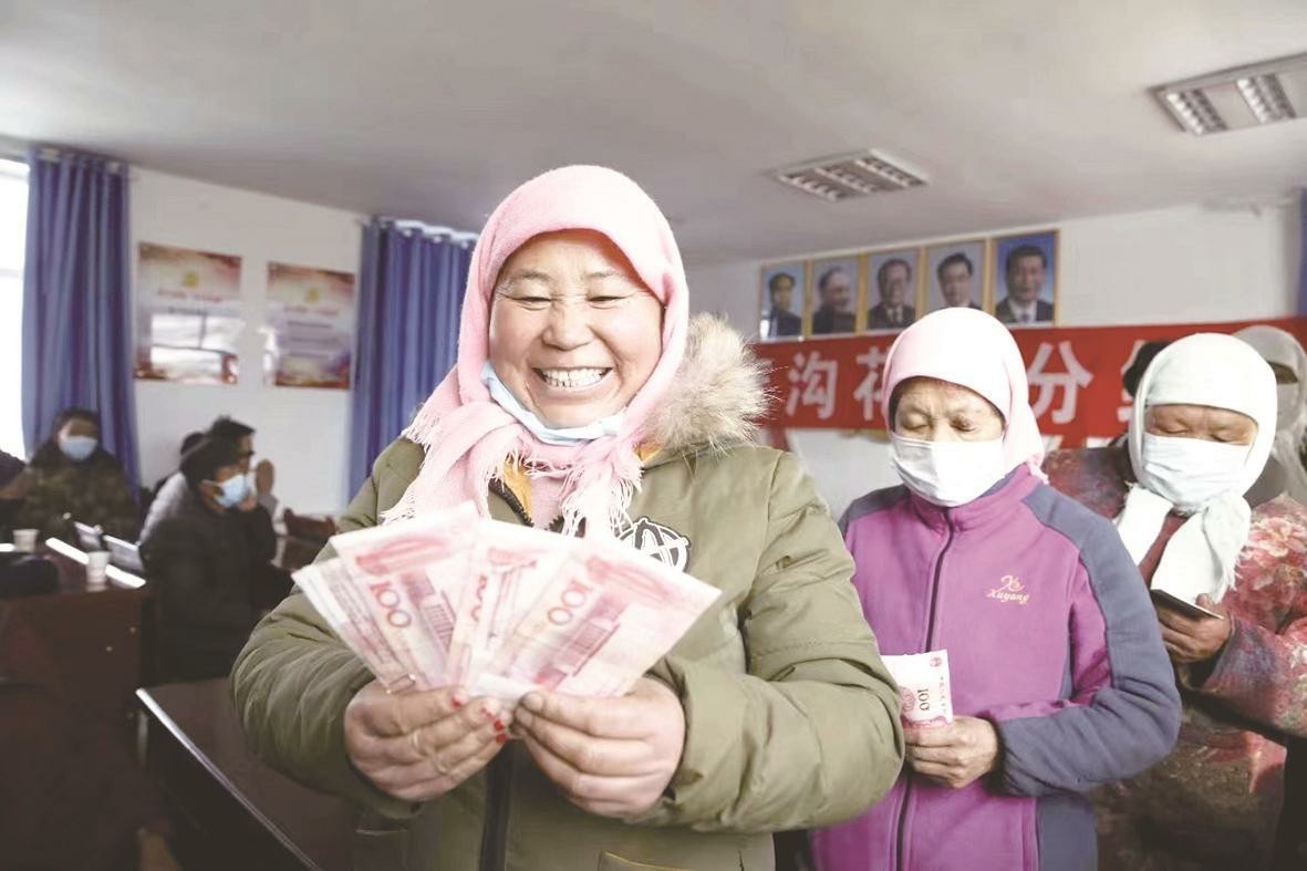 大通縣朔北藏族鄉(xiāng)邊麻溝村通過土地流轉等形式組織村民參與村集體產(chǎn)業(yè)發(fā)展,年底按照約定兌現(xiàn)收益分紅。