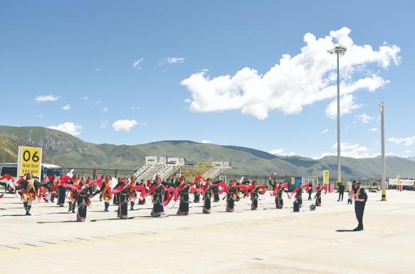 隨著艙門打開,乘客們紛紛走下飛機(jī),感受玉樹的藍(lán)天白云,感受玉樹的熱情豪爽,感受玉樹的文化底蘊(yùn)……感受這座城市的獨(dú)特魅力。