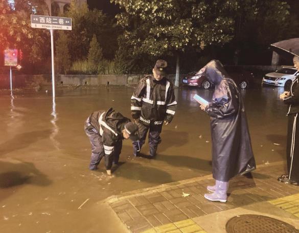 馮磊和張俊杰對轄區內的低洼地帶、易積水路面、停車場等重點區域開展排查,發現積水多的路面立即清理。
