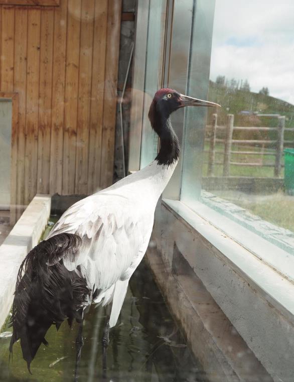 一旁的一間玻璃暖房里,一只體型秀美的黑頸鶴悠閑地散步。這是一只落單的黑頸鶴成鳥,今年6月從德令哈救助的。徐豐奕說,這只黑頸鶴送到站里經仔細檢查發現,它的翅膀和腳趾有不同程度的傷。經專業人員評估,它已經失去野外生存能力,可能終老在這里。看到這只孤單的黑頸鶴不能展翅翱翔,徐豐奕和同事心里不是滋味,他們能做的就是保證黑頸鶴的健康,讓它安心度過余生。