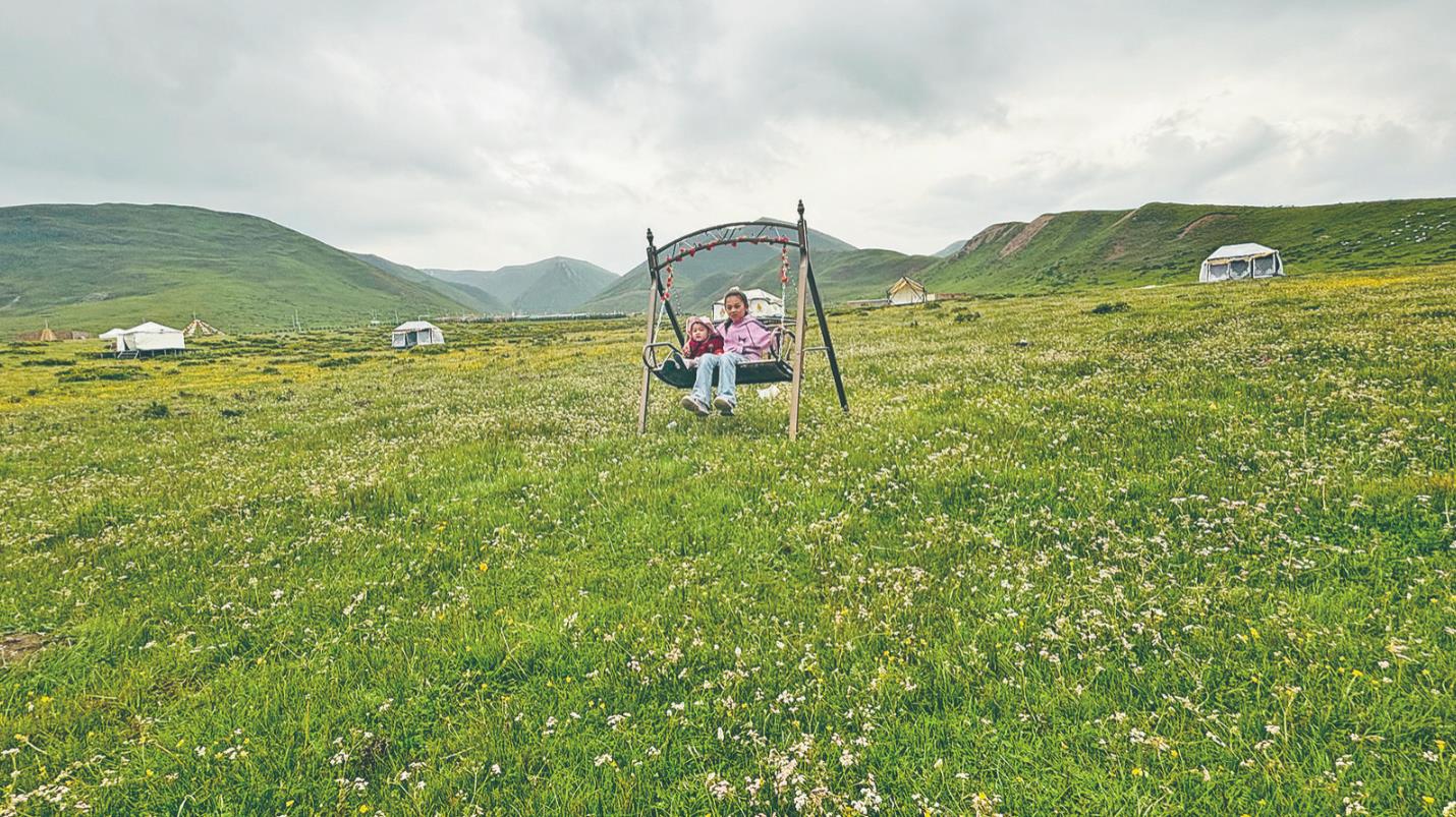 青海新聞網(wǎng)·大美青海客戶端訊 盛夏時(shí)節(jié),驅(qū)車沿循同公路一路南行,來到海東市循化撒拉族自治縣崗察藏族鄉(xiāng)崗察村,潔白的雪山下青色的草原一望無際,悠閑自在的牛羊散落其間,這里便是崗察村集體經(jīng)濟(jì)項(xiàng)目——金蓮花游牧民俗風(fēng)情園,正值旺季,一頂頂白色帳篷中不時(shí)飄蕩出陣陣牧歌和歡聲笑語,幸福洋溢在草原上。