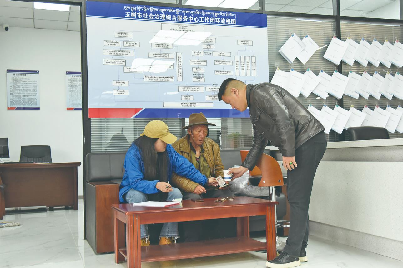 玉樹市社會(huì)治理綜合服務(wù)中心整合了市法院、公安局、司法局、信訪局、人社局、住建局等部門,通過(guò)重點(diǎn)部門集中常駐、一般部門輪換入駐、涉事部門“隨叫隨到”,形成多職能并行、多部門聯(lián)動(dòng)的“一體化”“一站式”受理、分流、研判、化解、督辦的閉環(huán)運(yùn)行模式,“全鏈條”服務(wù)群眾,多元化解矛盾糾紛,保證中心有服務(wù)有結(jié)果。