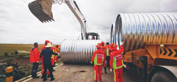 9月2日凌晨,海南藏族自治州共和縣石乃亥鎮遭遇短時強對流天氣,突降暴雨,致使石乃亥鎮S208線切泉溝至黑馬河公路K67+930處道路涵洞被洪水沖毀,青海省公路局公路養護應急保障中心接到指令,第一時間啟動應急響應,7時23分派出9名應急人員,調運應急車輛,攜帶搶險物資前往水毀現場開展應急處置。9時20分,青海省公路局公路養護應急保障中心應急分隊到達水毀現場,根據現場指揮調度,應急分隊積極配合湟源公路總段對路面及河道淤泥開展清理工作,連夜對沖毀的涵洞安裝波紋涵管及回填,經過7個多小時的連續奮戰,9月3日4時24分,道路恢復暢通。