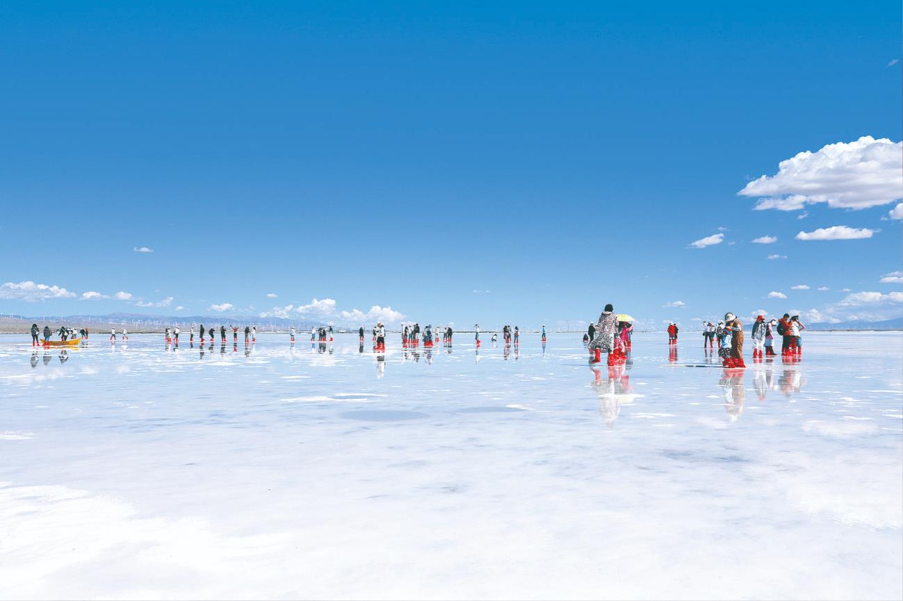 茶卡是藏語,意為“鹽池”。這里擁有獨(dú)特的高原鹽湖景觀,是深厚的鹽文化承載地,更是青海打造國際生態(tài)旅游目的地、發(fā)展生態(tài)旅游的響亮品牌。從一個產(chǎn)鹽地“搖身一變”成為青海生態(tài)旅游的網(wǎng)紅“打卡地”。關(guān)于茶卡鹽湖,不僅是青海探索“工業(yè)+”的轉(zhuǎn)型樣本,也是青海堅(jiān)持生態(tài)優(yōu)先、綠色發(fā)展的生動實(shí)踐。