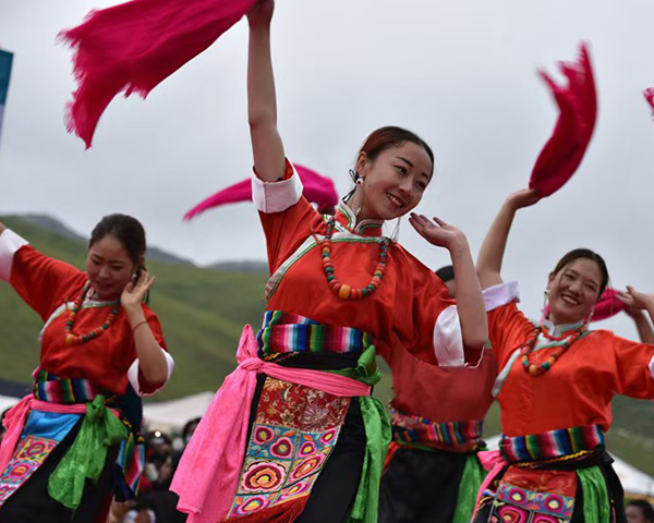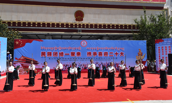 同德縣把所有工作都賦予民族團結的意義,不斷創新鑄牢中華民族共同體意識宣傳教育載體,創立帳篷課堂、志愿紅馬甲、馬背宣講隊、巾幗宣講團等特色宣講隊伍,扎實開展社會主義核心價值觀宣傳,持續推行使用國家通用語言文字,以思想相通促進心靈相通、情感相通。目前,全縣6.5萬各族群眾和諧相處、親如一家,“中華民族一家親,同心共筑中國夢”成為全社會的共同心愿。