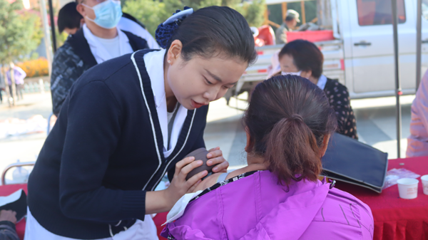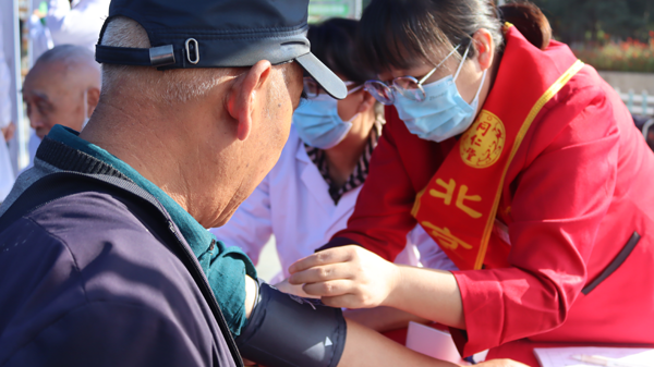 醫護人員為現場群眾免費測量血壓