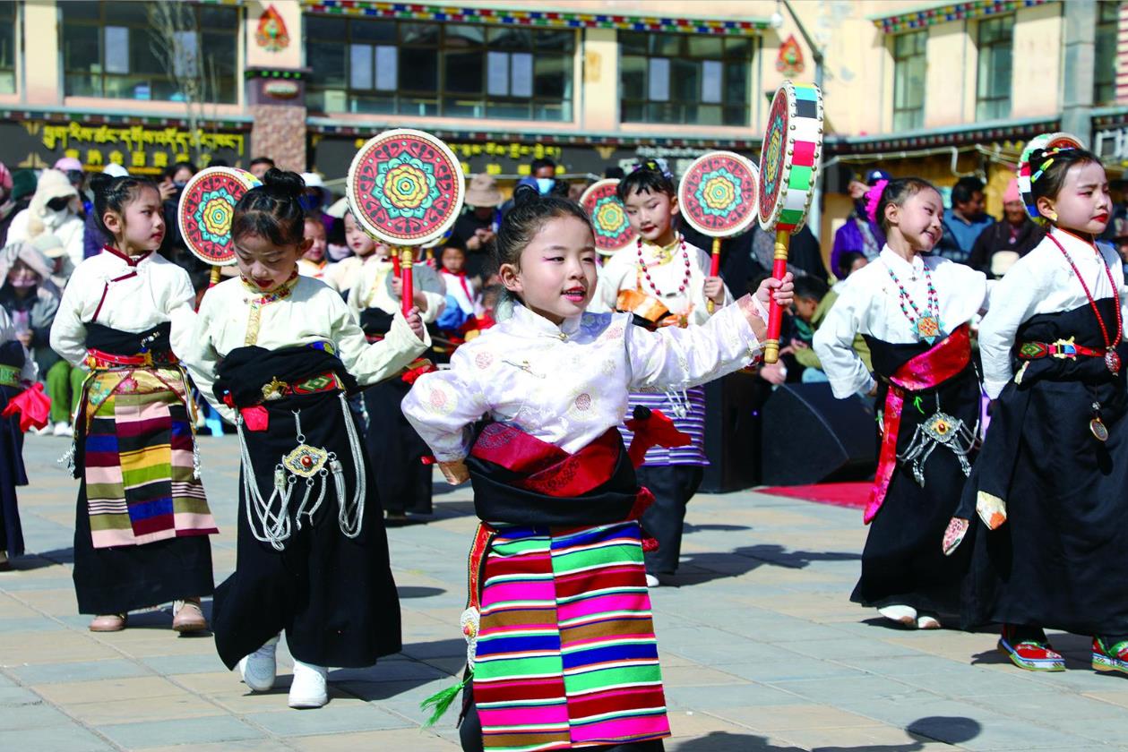 “現(xiàn)在幼兒園的教學(xué)條件有了很大提升,我們通過給孩子們觀看圖片、視頻,讓大家了解各個(gè)民族獨(dú)特的文化,知道自己所屬民族的分布區(qū)域、語言文字、風(fēng)俗等。走出教室,也有豐富多彩的集體活動(dòng),增強(qiáng)孩子們熱愛祖國、團(tuán)結(jié)互助的情感。目前,幼兒園已經(jīng)形成了8個(gè)領(lǐng)域的區(qū)域角,還摸索出傳統(tǒng)文化結(jié)合幼兒舞蹈融合非遺項(xiàng)目的學(xué)前教育新模式。”久美巴毛介紹。